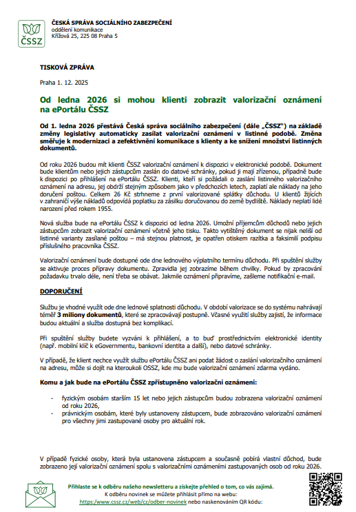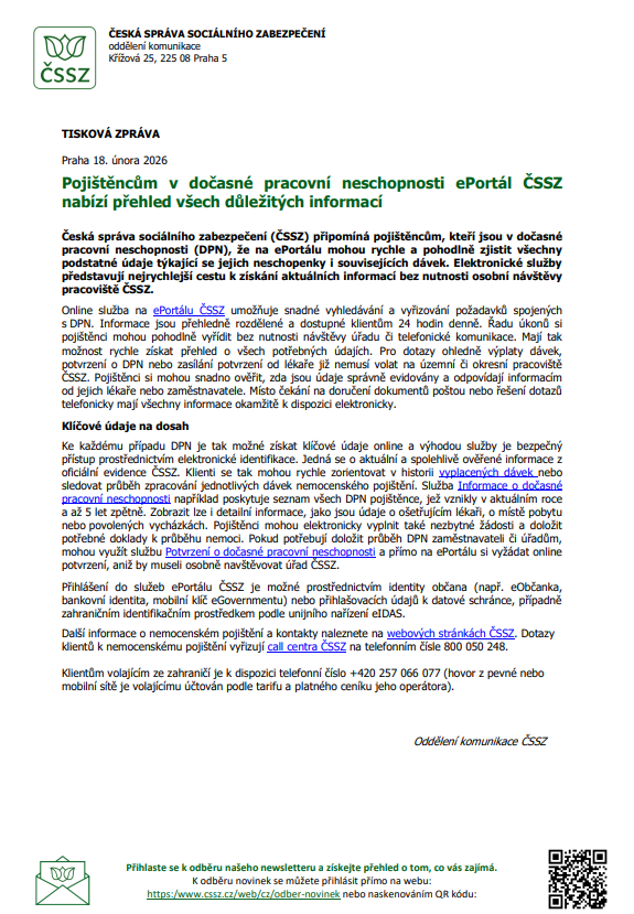 🎉 Tisková zpráva MPSV